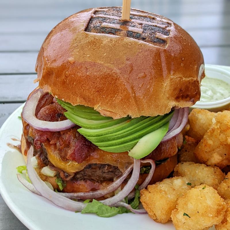 8 oz Niman Ranch beef, garlic aioli, tater tots, maple bacon, sunny side up egg, cheddar cheese, pickles.